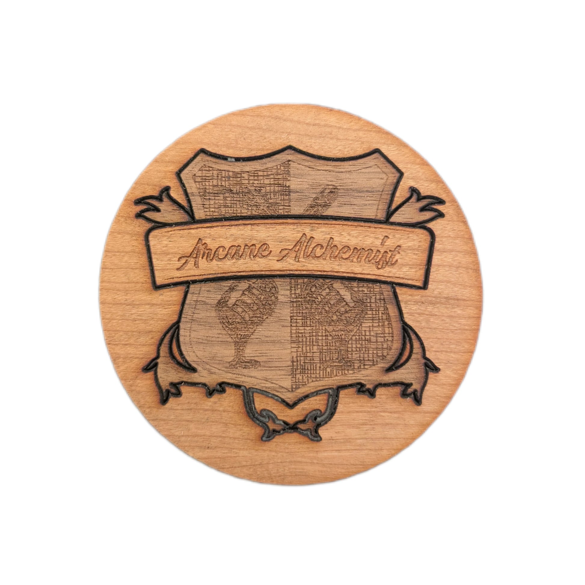 Iconic and durable. This double thickness coaster is featuring our magical logo is made from cherry and walnut ply. Coated with beeswax for a stunning finish.